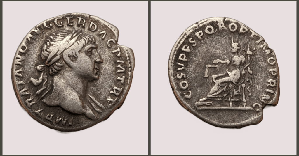 RIC II Trajan 119, 103-111AD, AR Denarius, IMP TRAIANO AVG GER DAC P M TR P, Aequitas, draped, seated left on chair without back, holding scales in right hand and cornucopiae in left, COS V P P S P Q R OPTIMO PRINC, 3.23g 19.0mm RIC IV Trebonianus Gallus 48A, 251-253AD, AR Antoninanus, IMP CAE C VIB TREB GALLVS AVG, Victory, winged, draped, standing left, holding wreath in right hand and palm in left hand, VICTORIA AVGG, 3.41g 22.4mmRIC II Vespasian 703, 74AD, AR Denarius, IMP CAESAR VESPASIANVS AVG, Winged caduceus, upright, PON MAX TR P COS V, 2.75g, 18.8mmRIC II Titus 124, 80AD, AR Denarius, IMP TITVS CAES VESPASIAN AVG P M, Square seat draped, three crescents in triangular frame with palmettes or corn-ears or both, TR P IX IMP XV COS VIII P P, 2.81g, 18.2mmRIC II Domitian 28 or 58, 81AD, AR Denarius, IMP CAES DOMITIANVS AVG P M. A very rare coin, minted during the first 4 months of Domitian’s reign, Sept 14-Dec 31 81AD, Minerva advancing right, holding spear and shield, [TR P?] COS VII DES VIII P P, The only difference between the references is the inclusion of “TR P” on the reverse, sadly I cannot determine which fits this coin, 2.66g, 18.7mmRIC II Domitian 735, 92AD, AR Denarius, IMP CAES DOMIT AVG GERM P M TR P XI, Minerva advancing right, holding spear and shield, IMP XXII COS XVI CENS P P P, Minerva was Domitian’s favorite deity, representing his moral and religious reforms, a break from the themes of the past that depicted military triumph and strength, 3.09g, 18.2mmRIC II Trajan 343, 114-117AD, AR Denarius, IMP CAES NER TRAIANO OPTIMO AVG GER DAC, Felicitas, draped, standing left, holding up caduceus in right hand and cornucopiae in left, P M TR P COS VI P P S P Q R, 3.16g, 18.4mmRIC III Antoninus Pius 417A, 140AD, AR Denarius, ANTONINVS AVG PIVS P P TR P COS III, Marcus Aurelius as Caesar, AVRELIVS CAESAR AVG PII F COS, 3.17g, 16.5mm, SOLDRIC IV Geta 20B, 200-202AD, AR Denarius, P SEPT GETA CAES PONT, Securitas, draped, seated left, holding globe in right hand, left arm resting on arm of chair, SECVRIT IMPERII, 1.94g, 17.3mmRIC IV Geta 23 Limes, 200-202AD, AE Limes Denarius, P SEPT GETA CAES PONT, Victory, winged, draped, flying left, holding ribbon in both hands over shield on low base, VICT AETERN, 2.58g, 18.3mmGeta/Caracalla Contemporary Fouree, 198-210AD, Silver plated AE, Head of Geta, This coin features an obverse/reverse mismatch, the victory reverse was used on coins of Caracalla, 1.31g, 16.5mmRIC IV Caracalla 9, 196-198AD, AR Denarius, M AVR ANTON CAES PONTIF, Felicitas, draped, standing left, holding caduceus in right hand and child in left arm, IMPERII FELICITAS, 2.23g, 17.9mmRIC IV Caracalla 179, 206-210AD, AR Denarius, ANTONINVS PIVS AVG, Caracalla, veiled, togate, standing left, sacrificing out of patera in right hand over tripod and holding roll in left hand, VOTA SVSCEPTA X, 3.00g, 19.2mmRIC IV Caracalla 206a, 213AD, AR Denarius, ANTONINVS PIVS AVG BRIT, Hercules naked except for lion-skin, holding branch and club. P M TR P XVI COS IIII P P, 3.32g, 18.4mmRIC IV Caracalla 206c, 213AD, AR Denarius, ANTONINVS PIVS AVG GERM, Hercules naked except for lion-skin, holding branch and club. P M TR P XVI COS IIII P P, 2.77g, 19.44mmRIC IV Elagabalus 72e, 218-222AD, AR Antoninianus, IMP ANTONINVS AVG, Fides, draped, standing front, head right, holding standard in left hand and vexillum in right hand, FIDES MILITVM, 4.66g, 22.9mmRIC IV Severus Alexander 301, 222-235AD, AR Denarius, Antioch Mint, IMP C M AVR SEV ALEXAND AVG, Victory, winged, draped, running right, holding wreath in right hand and palm in left hand; in field, star, VICTORIA AVG, 2.83g, 18.9mmRIC IV Gordian III 140, 243-244AD, AR Antoninianus, IMP GORDIANVS PIVS FEL AVG, Felicitas, draped, standing left, holding long caduceus in right hand and cornucopiae, FELICIT TEMP. 3.74g, 22.7mmRIC IV Philip I 40B, 244-247AD, AR Antoninianus,IMP M IVL PHILIPPVS AVG, Pax, draped, standing left, holding branch in right hand and transverse spear in left hand, PAX AETERNRIC V Valerian 106, 257AD, AR Antoninianus, IMP C P LIC VALERIANVS P F AVG, Sol, radiate, standing or walking left, raising right hand and holding whip or globe in left hand, ORIENS AVGG, SOLDRIC V Gallienus 260k: Subtype 1, 260-268AD, Billon Antoninianus, GALLIENVS AVG, Pax, draped, seated left, holding olive-branch in right hand and sceptre in left hand, PAX PVBLICARIC V Gallienus 668a: Subtype 3, 260-268AD, AR Billon Antoninianus, Antioch mint, 9th emission, ex. CNG, GALLIENVS AVG, Bust of Gallienus, radiate, draped, right, VIRTVS AVG, Virtus, helmeted, in military attire, standing left, holding shield in right hand and spear in left hand, -/-//*, 4.43g, 21.9mm RIC V Salonina (2) 71, 260-268AD, Billon Antoninianus, SALONINA AVG, Concordia, draped, seated left, holding patera in right hand and double cornucopiae in left hand,CONCOR AVG, /-//IIRIC V Postumus 83, 260-269AD, AR Antoninianus, Lugdunum Mint, IMP C POSTVMVS P F AVG, Postumus, draped, cuirassed, standing right, holding spear in right hand and globe in left hand, SAECVLI FELICITAS, 3.36g, 19.9mmRIC V Victorinus 61, 269-271AD, AR Antoninianus, Southern Gallic Mint, IMP C VICTORINVS P F AVG, Providentia, draped, standing left, holding baton in right hand and sceptre in left hand; at foot, globe, PROVID AVG or PROVIDENTIA AVGRIC V Claudius Gothicus 14, 268-270AD, Billon Antoninianus, Rome Mint, IMP C CLAVDIVS AVG, Aequitas, draped, standing left, holding scales in right hand and cornucopiae in left hand, AEQVITAS AVGRIC V Claudius Gothicus 214, 268-270AD, Billon Antoninianus, Antioch Mint, IMP C CLAVDIVS AVG, Neptune, standing left, holding dolphin in right hand and trident in left hand, NEPTVN AVG or NEPTVS AVG, /-//A, SOLDRIC V Tetricus I 271 Tetricus II, 273-274AD, Billon Antoninianus, Cologne Mint, C P ES TETRICVS CAES or C P ESV TETRICVS CAES or C E P TETRICVS CAES or C TETRICVS CAES, Spes, draped, walking left, holding flower in right hand and raising robe with left hand, SPES AVGGRIC V