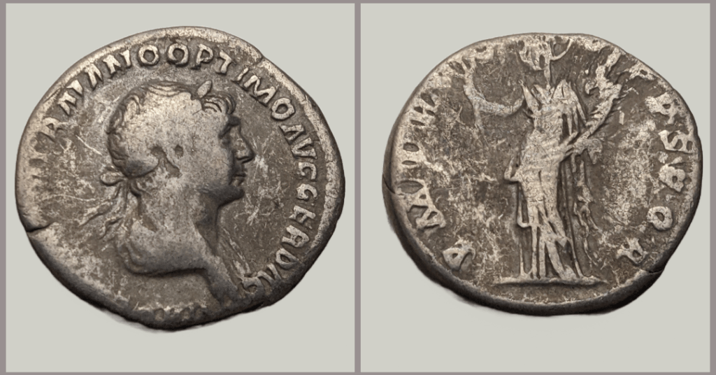 RIC II Trajan 119, 103-111AD, AR Denarius, IMP TRAIANO AVG GER DAC P M TR P, Aequitas, draped, seated left on chair without back, holding scales in right hand and cornucopiae in left, COS V P P S P Q R OPTIMO PRINC, 3.23g 19.0mm RIC IV Trebonianus Gallus 48A, 251-253AD, AR Antoninanus, IMP CAE C VIB TREB GALLVS AVG, Victory, winged, draped, standing left, holding wreath in right hand and palm in left hand, VICTORIA AVGG, 3.41g 22.4mmRIC II Vespasian 703, 74AD, AR Denarius, IMP CAESAR VESPASIANVS AVG, Winged caduceus, upright, PON MAX TR P COS V, 2.75g, 18.8mmRIC II Titus 124, 80AD, AR Denarius, IMP TITVS CAES VESPASIAN AVG P M, Square seat draped, three crescents in triangular frame with palmettes or corn-ears or both, TR P IX IMP XV COS VIII P P, 2.81g, 18.2mmRIC II Domitian 28 or 58, 81AD, AR Denarius, IMP CAES DOMITIANVS AVG P M. A very rare coin, minted during the first 4 months of Domitian’s reign, Sept 14-Dec 31 81AD, Minerva advancing right, holding spear and shield, [TR P?] COS VII DES VIII P P, The only difference between the references is the inclusion of “TR P” on the reverse, sadly I cannot determine which fits this coin, 2.66g, 18.7mmRIC II Domitian 735, 92AD, AR Denarius, IMP CAES DOMIT AVG GERM P M TR P XI, Minerva advancing right, holding spear and shield, IMP XXII COS XVI CENS P P P, Minerva was Domitian’s favorite deity, representing his moral and religious reforms, a break from the themes of the past that depicted military triumph and strength, 3.09g, 18.2mmRIC II Trajan 343, 114-117AD, AR Denarius, IMP CAES NER TRAIANO OPTIMO AVG GER DAC, Felicitas, draped, standing left, holding up caduceus in right hand and cornucopiae in left, P M TR P COS VI P P S P Q R, 3.16g, 18.4mmRIC III Antoninus Pius 417A, 140AD, AR Denarius, ANTONINVS AVG PIVS P P TR P COS III, Marcus Aurelius as Caesar, AVRELIVS CAESAR AVG PII F COS, 3.17g, 16.5mm, SOLDRIC IV Geta 20B, 200-202AD, AR Denarius, P SEPT GETA CAES PONT, Securitas, draped, seated left, holding globe in right hand, left arm resting on arm of chair, SECVRIT IMPERII, 1.94g, 17.3mmRIC IV Geta 23 Limes, 200-202AD, AE Limes Denarius, P SEPT GETA CAES PONT, Victory, winged, draped, flying left, holding ribbon in both hands over shield on low base, VICT AETERN, 2.58g, 18.3mmGeta/Caracalla Contemporary Fouree, 198-210AD, Silver plated AE, Head of Geta, This coin features an obverse/reverse mismatch, the victory reverse was used on coins of Caracalla, 1.31g, 16.5mmRIC IV Caracalla 9, 196-198AD, AR Denarius, M AVR ANTON CAES PONTIF, Felicitas, draped, standing left, holding caduceus in right hand and child in left arm, IMPERII FELICITAS, 2.23g, 17.9mmRIC IV Caracalla 179, 206-210AD, AR Denarius, ANTONINVS PIVS AVG, Caracalla, veiled, togate, standing left, sacrificing out of patera in right hand over tripod and holding roll in left hand, VOTA SVSCEPTA X, 3.00g, 19.2mmRIC IV Caracalla 206a, 213AD, AR Denarius, ANTONINVS PIVS AVG BRIT, Hercules naked except for lion-skin, holding branch and club. P M TR P XVI COS IIII P P, 3.32g, 18.4mmRIC IV Caracalla 206c, 213AD, AR Denarius, ANTONINVS PIVS AVG GERM, Hercules naked except for lion-skin, holding branch and club. P M TR P XVI COS IIII P P, 2.77g, 19.44mmRIC IV Elagabalus 72e, 218-222AD, AR Antoninianus, IMP ANTONINVS AVG, Fides, draped, standing front, head right, holding standard in left hand and vexillum in right hand, FIDES MILITVM, 4.66g, 22.9mmRIC IV Severus Alexander 301, 222-235AD, AR Denarius, Antioch Mint, IMP C M AVR SEV ALEXAND AVG, Victory, winged, draped, running right, holding wreath in right hand and palm in left hand; in field, star, VICTORIA AVG, 2.83g, 18.9mmRIC IV Gordian III 140, 243-244AD, AR Antoninianus, IMP GORDIANVS PIVS FEL AVG, Felicitas, draped, standing left, holding long caduceus in right hand and cornucopiae, FELICIT TEMP. 3.74g, 22.7mmRIC IV Philip I 40B, 244-247AD, AR Antoninianus,IMP M IVL PHILIPPVS AVG, Pax, draped, standing left, holding branch in right hand and transverse spear in left hand, PAX AETERNRIC V Valerian 106, 257AD, AR Antoninianus, IMP C P LIC VALERIANVS P F AVG, Sol, radiate, standing or walking left, raising right hand and holding whip or globe in left hand, ORIENS AVGG, SOLDRIC V Gallienus 260k: Subtype 1, 260-268AD, Billon Antoninianus, GALLIENVS AVG, Pax, draped, seated left, holding olive-branch in right hand and sceptre in left hand, PAX PVBLICARIC V Gallienus 668a: Subtype 3, 260-268AD, AR Billon Antoninianus, Antioch mint, 9th emission, ex. CNG, GALLIENVS AVG, Bust of Gallienus, radiate, draped, right, VIRTVS AVG, Virtus, helmeted, in military attire, standing left, holding shield in right hand and spear in left hand, -/-//*, 4.43g, 21.9mm RIC V Salonina (2) 71, 260-268AD, Billon Antoninianus, SALONINA AVG, Concordia, draped, seated left, holding patera in right hand and double cornucopiae in left hand,CONCOR AVG, /-//IIRIC V Postumus 83, 260-269AD, AR Antoninianus, Lugdunum Mint, IMP C POSTVMVS P F AVG, Postumus, draped, cuirassed, standing right, holding spear in right hand and globe in left hand, SAECVLI FELICITAS, 3.36g, 19.9mmRIC V Victorinus 61, 269-271AD, AR Antoninianus, Southern Gallic Mint, IMP C VICTORINVS P F AVG, Providentia, draped, standing left, holding baton in right hand and sceptre in left hand; at foot, globe, PROVID AVG or PROVIDENTIA AVGRIC V Claudius Gothicus 14, 268-270AD, Billon Antoninianus, Rome Mint, IMP C CLAVDIVS AVG, Aequitas, draped, standing left, holding scales in right hand and cornucopiae in left hand, AEQVITAS AVGRIC V Claudius Gothicus 214, 268-270AD, Billon Antoninianus, Antioch Mint, IMP C CLAVDIVS AVG, Neptune, standing left, holding dolphin in right hand and trident in left hand, NEPTVN AVG or NEPTVS AVG, /-//A, SOLDRIC V Tetricus I 271 Tetricus II, 273-274AD, Billon Antoninianus, Cologne Mint, C P ES TETRICVS CAES or C P ESV TETRICVS CAES or C E P TETRICVS CAES or C TETRICVS CAES, Spes, draped, walking left, holding flower in right hand and raising robe with left hand, SPES AVGGRIC V