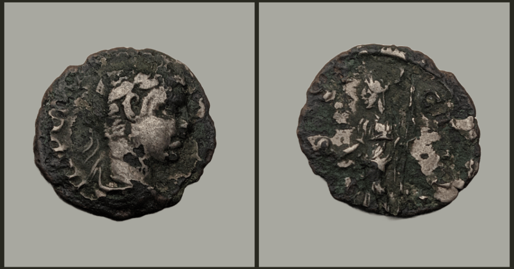 RIC II Trajan 119, 103-111AD, AR Denarius, IMP TRAIANO AVG GER DAC P M TR P, Aequitas, draped, seated left on chair without back, holding scales in right hand and cornucopiae in left, COS V P P S P Q R OPTIMO PRINC, 3.23g 19.0mm RIC IV Trebonianus Gallus 48A, 251-253AD, AR Antoninanus, IMP CAE C VIB TREB GALLVS AVG, Victory, winged, draped, standing left, holding wreath in right hand and palm in left hand, VICTORIA AVGG, 3.41g 22.4mmRIC II Vespasian 703, 74AD, AR Denarius, IMP CAESAR VESPASIANVS AVG, Winged caduceus, upright, PON MAX TR P COS V, 2.75g, 18.8mmRIC II Titus 124, 80AD, AR Denarius, IMP TITVS CAES VESPASIAN AVG P M, Square seat draped, three crescents in triangular frame with palmettes or corn-ears or both, TR P IX IMP XV COS VIII P P, 2.81g, 18.2mmRIC II Domitian 28 or 58, 81AD, AR Denarius, IMP CAES DOMITIANVS AVG P M. A very rare coin, minted during the first 4 months of Domitian’s reign, Sept 14-Dec 31 81AD, Minerva advancing right, holding spear and shield, [TR P?] COS VII DES VIII P P, The only difference between the references is the inclusion of “TR P” on the reverse, sadly I cannot determine which fits this coin, 2.66g, 18.7mmRIC II Domitian 735, 92AD, AR Denarius, IMP CAES DOMIT AVG GERM P M TR P XI, Minerva advancing right, holding spear and shield, IMP XXII COS XVI CENS P P P, Minerva was Domitian’s favorite deity, representing his moral and religious reforms, a break from the themes of the past that depicted military triumph and strength, 3.09g, 18.2mmRIC II Trajan 343, 114-117AD, AR Denarius, IMP CAES NER TRAIANO OPTIMO AVG GER DAC, Felicitas, draped, standing left, holding up caduceus in right hand and cornucopiae in left, P M TR P COS VI P P S P Q R, 3.16g, 18.4mmRIC III Antoninus Pius 417A, 140AD, AR Denarius, ANTONINVS AVG PIVS P P TR P COS III, Marcus Aurelius as Caesar, AVRELIVS CAESAR AVG PII F COS, 3.17g, 16.5mm, SOLDRIC IV Geta 20B, 200-202AD, AR Denarius, P SEPT GETA CAES PONT, Securitas, draped, seated left, holding globe in right hand, left arm resting on arm of chair, SECVRIT IMPERII, 1.94g, 17.3mmRIC IV Geta 23 Limes, 200-202AD, AE Limes Denarius, P SEPT GETA CAES PONT, Victory, winged, draped, flying left, holding ribbon in both hands over shield on low base, VICT AETERN, 2.58g, 18.3mmGeta/Caracalla Contemporary Fouree, 198-210AD, Silver plated AE, Head of Geta, This coin features an obverse/reverse mismatch, the victory reverse was used on coins of Caracalla, 1.31g, 16.5mmRIC IV Caracalla 9, 196-198AD, AR Denarius, M AVR ANTON CAES PONTIF, Felicitas, draped, standing left, holding caduceus in right hand and child in left arm, IMPERII FELICITAS, 2.23g, 17.9mmRIC IV Caracalla 179, 206-210AD, AR Denarius, ANTONINVS PIVS AVG, Caracalla, veiled, togate, standing left, sacrificing out of patera in right hand over tripod and holding roll in left hand, VOTA SVSCEPTA X, 3.00g, 19.2mmRIC IV Caracalla 206a, 213AD, AR Denarius, ANTONINVS PIVS AVG BRIT, Hercules naked except for lion-skin, holding branch and club. P M TR P XVI COS IIII P P, 3.32g, 18.4mmRIC IV Caracalla 206c, 213AD, AR Denarius, ANTONINVS PIVS AVG GERM, Hercules naked except for lion-skin, holding branch and club. P M TR P XVI COS IIII P P, 2.77g, 19.44mmRIC IV Elagabalus 72e, 218-222AD, AR Antoninianus, IMP ANTONINVS AVG, Fides, draped, standing front, head right, holding standard in left hand and vexillum in right hand, FIDES MILITVM, 4.66g, 22.9mmRIC IV Severus Alexander 301, 222-235AD, AR Denarius, Antioch Mint, IMP C M AVR SEV ALEXAND AVG, Victory, winged, draped, running right, holding wreath in right hand and palm in left hand; in field, star, VICTORIA AVG, 2.83g, 18.9mmRIC IV Gordian III 140, 243-244AD, AR Antoninianus, IMP GORDIANVS PIVS FEL AVG, Felicitas, draped, standing left, holding long caduceus in right hand and cornucopiae, FELICIT TEMP. 3.74g, 22.7mmRIC IV Philip I 40B, 244-247AD, AR Antoninianus,IMP M IVL PHILIPPVS AVG, Pax, draped, standing left, holding branch in right hand and transverse spear in left hand, PAX AETERNRIC V Valerian 106, 257AD, AR Antoninianus, IMP C P LIC VALERIANVS P F AVG, Sol, radiate, standing or walking left, raising right hand and holding whip or globe in left hand, ORIENS AVGG, SOLDRIC V Gallienus 260k: Subtype 1, 260-268AD, Billon Antoninianus, GALLIENVS AVG, Pax, draped, seated left, holding olive-branch in right hand and sceptre in left hand, PAX PVBLICARIC V Gallienus 668a: Subtype 3, 260-268AD, AR Billon Antoninianus, Antioch mint, 9th emission, ex. CNG, GALLIENVS AVG, Bust of Gallienus, radiate, draped, right, VIRTVS AVG, Virtus, helmeted, in military attire, standing left, holding shield in right hand and spear in left hand, -/-//*, 4.43g, 21.9mm RIC V Salonina (2) 71, 260-268AD, Billon Antoninianus, SALONINA AVG, Concordia, draped, seated left, holding patera in right hand and double cornucopiae in left hand,CONCOR AVG, /-//IIRIC V Postumus 83, 260-269AD, AR Antoninianus, Lugdunum Mint, IMP C POSTVMVS P F AVG, Postumus, draped, cuirassed, standing right, holding spear in right hand and globe in left hand, SAECVLI FELICITAS, 3.36g, 19.9mmRIC V Victorinus 61, 269-271AD, AR Antoninianus, Southern Gallic Mint, IMP C VICTORINVS P F AVG, Providentia, draped, standing left, holding baton in right hand and sceptre in left hand; at foot, globe, PROVID AVG or PROVIDENTIA AVGRIC V Claudius Gothicus 14, 268-270AD, Billon Antoninianus, Rome Mint, IMP C CLAVDIVS AVG, Aequitas, draped, standing left, holding scales in right hand and cornucopiae in left hand, AEQVITAS AVGRIC V Claudius Gothicus 214, 268-270AD, Billon Antoninianus, Antioch Mint, IMP C CLAVDIVS AVG, Neptune, standing left, holding dolphin in right hand and trident in left hand, NEPTVN AVG or NEPTVS AVG, /-//A, SOLDRIC V Tetricus I 271 Tetricus II, 273-274AD, Billon Antoninianus, Cologne Mint, C P ES TETRICVS CAES or C P ESV TETRICVS CAES or C E P TETRICVS CAES or C TETRICVS CAES, Spes, draped, walking left, holding flower in right hand and raising robe with left hand, SPES AVGGRIC V