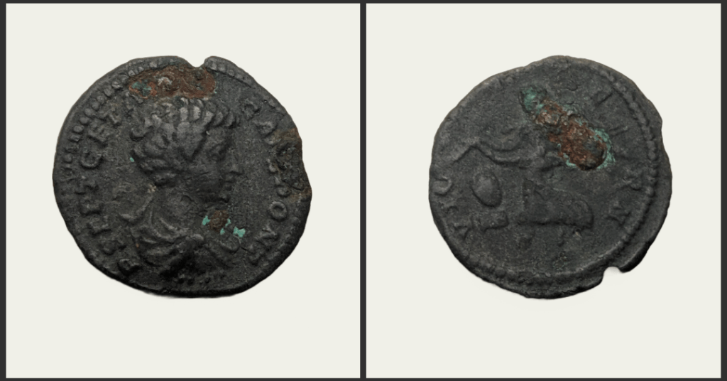 RIC II Trajan 119, 103-111AD, AR Denarius, IMP TRAIANO AVG GER DAC P M TR P, Aequitas, draped, seated left on chair without back, holding scales in right hand and cornucopiae in left, COS V P P S P Q R OPTIMO PRINC, 3.23g 19.0mm RIC IV Trebonianus Gallus 48A, 251-253AD, AR Antoninanus, IMP CAE C VIB TREB GALLVS AVG, Victory, winged, draped, standing left, holding wreath in right hand and palm in left hand, VICTORIA AVGG, 3.41g 22.4mmRIC II Vespasian 703, 74AD, AR Denarius, IMP CAESAR VESPASIANVS AVG, Winged caduceus, upright, PON MAX TR P COS V, 2.75g, 18.8mmRIC II Titus 124, 80AD, AR Denarius, IMP TITVS CAES VESPASIAN AVG P M, Square seat draped, three crescents in triangular frame with palmettes or corn-ears or both, TR P IX IMP XV COS VIII P P, 2.81g, 18.2mmRIC II Domitian 28 or 58, 81AD, AR Denarius, IMP CAES DOMITIANVS AVG P M. A very rare coin, minted during the first 4 months of Domitian’s reign, Sept 14-Dec 31 81AD, Minerva advancing right, holding spear and shield, [TR P?] COS VII DES VIII P P, The only difference between the references is the inclusion of “TR P” on the reverse, sadly I cannot determine which fits this coin, 2.66g, 18.7mmRIC II Domitian 735, 92AD, AR Denarius, IMP CAES DOMIT AVG GERM P M TR P XI, Minerva advancing right, holding spear and shield, IMP XXII COS XVI CENS P P P, Minerva was Domitian’s favorite deity, representing his moral and religious reforms, a break from the themes of the past that depicted military triumph and strength, 3.09g, 18.2mmRIC II Trajan 343, 114-117AD, AR Denarius, IMP CAES NER TRAIANO OPTIMO AVG GER DAC, Felicitas, draped, standing left, holding up caduceus in right hand and cornucopiae in left, P M TR P COS VI P P S P Q R, 3.16g, 18.4mmRIC III Antoninus Pius 417A, 140AD, AR Denarius, ANTONINVS AVG PIVS P P TR P COS III, Marcus Aurelius as Caesar, AVRELIVS CAESAR AVG PII F COS, 3.17g, 16.5mm, SOLDRIC IV Geta 20B, 200-202AD, AR Denarius, P SEPT GETA CAES PONT, Securitas, draped, seated left, holding globe in right hand, left arm resting on arm of chair, SECVRIT IMPERII, 1.94g, 17.3mmRIC IV Geta 23 Limes, 200-202AD, AE Limes Denarius, P SEPT GETA CAES PONT, Victory, winged, draped, flying left, holding ribbon in both hands over shield on low base, VICT AETERN, 2.58g, 18.3mmGeta/Caracalla Contemporary Fouree, 198-210AD, Silver plated AE, Head of Geta, This coin features an obverse/reverse mismatch, the victory reverse was used on coins of Caracalla, 1.31g, 16.5mmRIC IV Caracalla 9, 196-198AD, AR Denarius, M AVR ANTON CAES PONTIF, Felicitas, draped, standing left, holding caduceus in right hand and child in left arm, IMPERII FELICITAS, 2.23g, 17.9mmRIC IV Caracalla 179, 206-210AD, AR Denarius, ANTONINVS PIVS AVG, Caracalla, veiled, togate, standing left, sacrificing out of patera in right hand over tripod and holding roll in left hand, VOTA SVSCEPTA X, 3.00g, 19.2mmRIC IV Caracalla 206a, 213AD, AR Denarius, ANTONINVS PIVS AVG BRIT, Hercules naked except for lion-skin, holding branch and club. P M TR P XVI COS IIII P P, 3.32g, 18.4mmRIC IV Caracalla 206c, 213AD, AR Denarius, ANTONINVS PIVS AVG GERM, Hercules naked except for lion-skin, holding branch and club. P M TR P XVI COS IIII P P, 2.77g, 19.44mmRIC IV Elagabalus 72e, 218-222AD, AR Antoninianus, IMP ANTONINVS AVG, Fides, draped, standing front, head right, holding standard in left hand and vexillum in right hand, FIDES MILITVM, 4.66g, 22.9mmRIC IV Severus Alexander 301, 222-235AD, AR Denarius, Antioch Mint, IMP C M AVR SEV ALEXAND AVG, Victory, winged, draped, running right, holding wreath in right hand and palm in left hand; in field, star, VICTORIA AVG, 2.83g, 18.9mmRIC IV Gordian III 140, 243-244AD, AR Antoninianus, IMP GORDIANVS PIVS FEL AVG, Felicitas, draped, standing left, holding long caduceus in right hand and cornucopiae, FELICIT TEMP. 3.74g, 22.7mmRIC IV Philip I 40B, 244-247AD, AR Antoninianus,IMP M IVL PHILIPPVS AVG, Pax, draped, standing left, holding branch in right hand and transverse spear in left hand, PAX AETERNRIC V Valerian 106, 257AD, AR Antoninianus, IMP C P LIC VALERIANVS P F AVG, Sol, radiate, standing or walking left, raising right hand and holding whip or globe in left hand, ORIENS AVGG, SOLDRIC V Gallienus 260k: Subtype 1, 260-268AD, Billon Antoninianus, GALLIENVS AVG, Pax, draped, seated left, holding olive-branch in right hand and sceptre in left hand, PAX PVBLICARIC V Gallienus 668a: Subtype 3, 260-268AD, AR Billon Antoninianus, Antioch mint, 9th emission, ex. CNG, GALLIENVS AVG, Bust of Gallienus, radiate, draped, right, VIRTVS AVG, Virtus, helmeted, in military attire, standing left, holding shield in right hand and spear in left hand, -/-//*, 4.43g, 21.9mm RIC V Salonina (2) 71, 260-268AD, Billon Antoninianus, SALONINA AVG, Concordia, draped, seated left, holding patera in right hand and double cornucopiae in left hand,CONCOR AVG, /-//IIRIC V Postumus 83, 260-269AD, AR Antoninianus, Lugdunum Mint, IMP C POSTVMVS P F AVG, Postumus, draped, cuirassed, standing right, holding spear in right hand and globe in left hand, SAECVLI FELICITAS, 3.36g, 19.9mmRIC V Victorinus 61, 269-271AD, AR Antoninianus, Southern Gallic Mint, IMP C VICTORINVS P F AVG, Providentia, draped, standing left, holding baton in right hand and sceptre in left hand; at foot, globe, PROVID AVG or PROVIDENTIA AVGRIC V Claudius Gothicus 14, 268-270AD, Billon Antoninianus, Rome Mint, IMP C CLAVDIVS AVG, Aequitas, draped, standing left, holding scales in right hand and cornucopiae in left hand, AEQVITAS AVGRIC V Claudius Gothicus 214, 268-270AD, Billon Antoninianus, Antioch Mint, IMP C CLAVDIVS AVG, Neptune, standing left, holding dolphin in right hand and trident in left hand, NEPTVN AVG or NEPTVS AVG, /-//A, SOLDRIC V Tetricus I 271 Tetricus II, 273-274AD, Billon Antoninianus, Cologne Mint, C P ES TETRICVS CAES or C P ESV TETRICVS CAES or C E P TETRICVS CAES or C TETRICVS CAES, Spes, draped, walking left, holding flower in right hand and raising robe with left hand, SPES AVGGRIC V