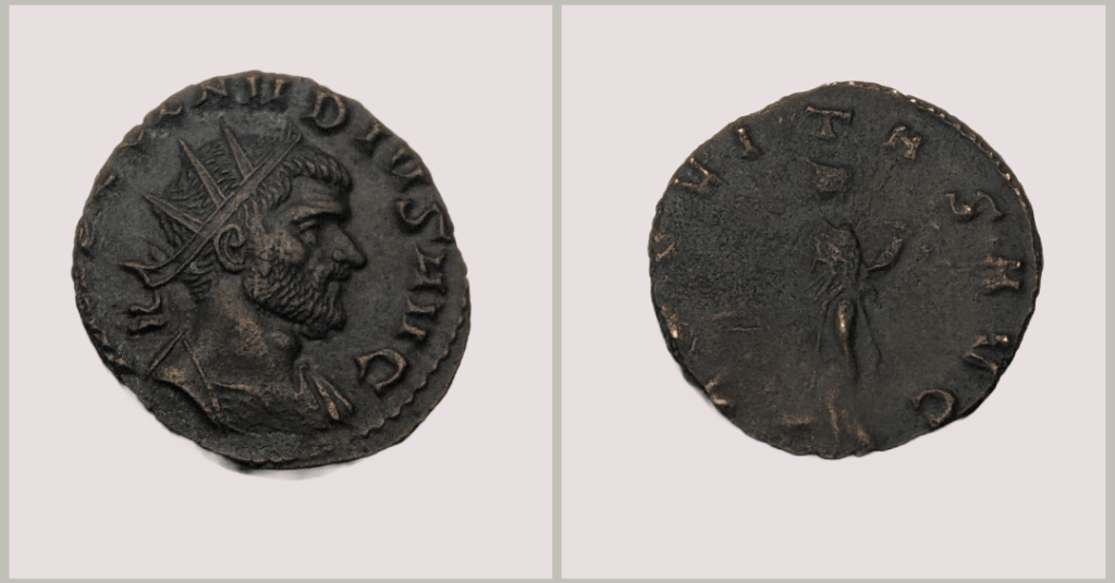 RIC II Trajan 119, 103-111AD, AR Denarius, IMP TRAIANO AVG GER DAC P M TR P, Aequitas, draped, seated left on chair without back, holding scales in right hand and cornucopiae in left, COS V P P S P Q R OPTIMO PRINC, 3.23g 19.0mm RIC IV Trebonianus Gallus 48A, 251-253AD, AR Antoninanus, IMP CAE C VIB TREB GALLVS AVG, Victory, winged, draped, standing left, holding wreath in right hand and palm in left hand, VICTORIA AVGG, 3.41g 22.4mmRIC II Vespasian 703, 74AD, AR Denarius, IMP CAESAR VESPASIANVS AVG, Winged caduceus, upright, PON MAX TR P COS V, 2.75g, 18.8mmRIC II Titus 124, 80AD, AR Denarius, IMP TITVS CAES VESPASIAN AVG P M, Square seat draped, three crescents in triangular frame with palmettes or corn-ears or both, TR P IX IMP XV COS VIII P P, 2.81g, 18.2mmRIC II Domitian 28 or 58, 81AD, AR Denarius, IMP CAES DOMITIANVS AVG P M. A very rare coin, minted during the first 4 months of Domitian’s reign, Sept 14-Dec 31 81AD, Minerva advancing right, holding spear and shield, [TR P?] COS VII DES VIII P P, The only difference between the references is the inclusion of “TR P” on the reverse, sadly I cannot determine which fits this coin, 2.66g, 18.7mmRIC II Domitian 735, 92AD, AR Denarius, IMP CAES DOMIT AVG GERM P M TR P XI, Minerva advancing right, holding spear and shield, IMP XXII COS XVI CENS P P P, Minerva was Domitian’s favorite deity, representing his moral and religious reforms, a break from the themes of the past that depicted military triumph and strength, 3.09g, 18.2mmRIC II Trajan 343, 114-117AD, AR Denarius, IMP CAES NER TRAIANO OPTIMO AVG GER DAC, Felicitas, draped, standing left, holding up caduceus in right hand and cornucopiae in left, P M TR P COS VI P P S P Q R, 3.16g, 18.4mmRIC III Antoninus Pius 417A, 140AD, AR Denarius, ANTONINVS AVG PIVS P P TR P COS III, Marcus Aurelius as Caesar, AVRELIVS CAESAR AVG PII F COS, 3.17g, 16.5mm, SOLDRIC IV Geta 20B, 200-202AD, AR Denarius, P SEPT GETA CAES PONT, Securitas, draped, seated left, holding globe in right hand, left arm resting on arm of chair, SECVRIT IMPERII, 1.94g, 17.3mmRIC IV Geta 23 Limes, 200-202AD, AE Limes Denarius, P SEPT GETA CAES PONT, Victory, winged, draped, flying left, holding ribbon in both hands over shield on low base, VICT AETERN, 2.58g, 18.3mmGeta/Caracalla Contemporary Fouree, 198-210AD, Silver plated AE, Head of Geta, This coin features an obverse/reverse mismatch, the victory reverse was used on coins of Caracalla, 1.31g, 16.5mmRIC IV Caracalla 9, 196-198AD, AR Denarius, M AVR ANTON CAES PONTIF, Felicitas, draped, standing left, holding caduceus in right hand and child in left arm, IMPERII FELICITAS, 2.23g, 17.9mmRIC IV Caracalla 179, 206-210AD, AR Denarius, ANTONINVS PIVS AVG, Caracalla, veiled, togate, standing left, sacrificing out of patera in right hand over tripod and holding roll in left hand, VOTA SVSCEPTA X, 3.00g, 19.2mmRIC IV Caracalla 206a, 213AD, AR Denarius, ANTONINVS PIVS AVG BRIT, Hercules naked except for lion-skin, holding branch and club. P M TR P XVI COS IIII P P, 3.32g, 18.4mmRIC IV Caracalla 206c, 213AD, AR Denarius, ANTONINVS PIVS AVG GERM, Hercules naked except for lion-skin, holding branch and club. P M TR P XVI COS IIII P P, 2.77g, 19.44mmRIC IV Elagabalus 72e, 218-222AD, AR Antoninianus, IMP ANTONINVS AVG, Fides, draped, standing front, head right, holding standard in left hand and vexillum in right hand, FIDES MILITVM, 4.66g, 22.9mmRIC IV Severus Alexander 301, 222-235AD, AR Denarius, Antioch Mint, IMP C M AVR SEV ALEXAND AVG, Victory, winged, draped, running right, holding wreath in right hand and palm in left hand; in field, star, VICTORIA AVG, 2.83g, 18.9mmRIC IV Gordian III 140, 243-244AD, AR Antoninianus, IMP GORDIANVS PIVS FEL AVG, Felicitas, draped, standing left, holding long caduceus in right hand and cornucopiae, FELICIT TEMP. 3.74g, 22.7mmRIC IV Philip I 40B, 244-247AD, AR Antoninianus,IMP M IVL PHILIPPVS AVG, Pax, draped, standing left, holding branch in right hand and transverse spear in left hand, PAX AETERNRIC V Valerian 106, 257AD, AR Antoninianus, IMP C P LIC VALERIANVS P F AVG, Sol, radiate, standing or walking left, raising right hand and holding whip or globe in left hand, ORIENS AVGG, SOLDRIC V Gallienus 260k: Subtype 1, 260-268AD, Billon Antoninianus, GALLIENVS AVG, Pax, draped, seated left, holding olive-branch in right hand and sceptre in left hand, PAX PVBLICARIC V Gallienus 668a: Subtype 3, 260-268AD, AR Billon Antoninianus, Antioch mint, 9th emission, ex. CNG, GALLIENVS AVG, Bust of Gallienus, radiate, draped, right, VIRTVS AVG, Virtus, helmeted, in military attire, standing left, holding shield in right hand and spear in left hand, -/-//*, 4.43g, 21.9mm RIC V Salonina (2) 71, 260-268AD, Billon Antoninianus, SALONINA AVG, Concordia, draped, seated left, holding patera in right hand and double cornucopiae in left hand,CONCOR AVG, /-//IIRIC V Postumus 83, 260-269AD, AR Antoninianus, Lugdunum Mint, IMP C POSTVMVS P F AVG, Postumus, draped, cuirassed, standing right, holding spear in right hand and globe in left hand, SAECVLI FELICITAS, 3.36g, 19.9mmRIC V Victorinus 61, 269-271AD, AR Antoninianus, Southern Gallic Mint, IMP C VICTORINVS P F AVG, Providentia, draped, standing left, holding baton in right hand and sceptre in left hand; at foot, globe, PROVID AVG or PROVIDENTIA AVGRIC V Claudius Gothicus 14, 268-270AD, Billon Antoninianus, Rome Mint, IMP C CLAVDIVS AVG, Aequitas, draped, standing left, holding scales in right hand and cornucopiae in left hand, AEQVITAS AVGRIC V Claudius Gothicus 214, 268-270AD, Billon Antoninianus, Antioch Mint, IMP C CLAVDIVS AVG, Neptune, standing left, holding dolphin in right hand and trident in left hand, NEPTVN AVG or NEPTVS AVG, /-//A, SOLDRIC V Tetricus I 271 Tetricus II, 273-274AD, Billon Antoninianus, Cologne Mint, C P ES TETRICVS CAES or C P ESV TETRICVS CAES or C E P TETRICVS CAES or C TETRICVS CAES, Spes, draped, walking left, holding flower in right hand and raising robe with left hand, SPES AVGGRIC V