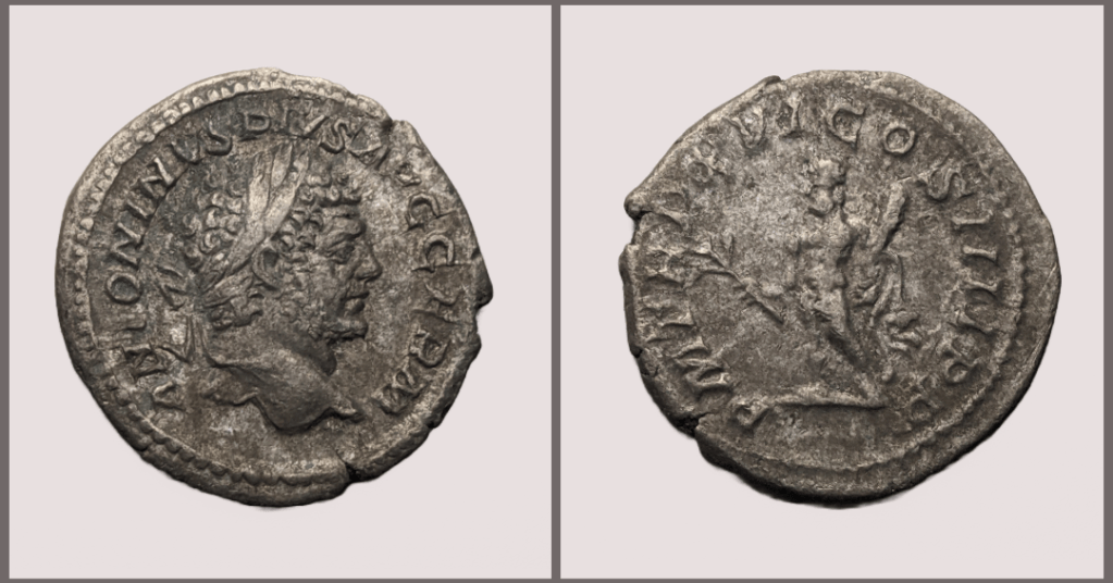 RIC II Trajan 119, 103-111AD, AR Denarius, IMP TRAIANO AVG GER DAC P M TR P, Aequitas, draped, seated left on chair without back, holding scales in right hand and cornucopiae in left, COS V P P S P Q R OPTIMO PRINC, 3.23g 19.0mm RIC IV Trebonianus Gallus 48A, 251-253AD, AR Antoninanus, IMP CAE C VIB TREB GALLVS AVG, Victory, winged, draped, standing left, holding wreath in right hand and palm in left hand, VICTORIA AVGG, 3.41g 22.4mmRIC II Vespasian 703, 74AD, AR Denarius, IMP CAESAR VESPASIANVS AVG, Winged caduceus, upright, PON MAX TR P COS V, 2.75g, 18.8mmRIC II Titus 124, 80AD, AR Denarius, IMP TITVS CAES VESPASIAN AVG P M, Square seat draped, three crescents in triangular frame with palmettes or corn-ears or both, TR P IX IMP XV COS VIII P P, 2.81g, 18.2mmRIC II Domitian 28 or 58, 81AD, AR Denarius, IMP CAES DOMITIANVS AVG P M. A very rare coin, minted during the first 4 months of Domitian’s reign, Sept 14-Dec 31 81AD, Minerva advancing right, holding spear and shield, [TR P?] COS VII DES VIII P P, The only difference between the references is the inclusion of “TR P” on the reverse, sadly I cannot determine which fits this coin, 2.66g, 18.7mmRIC II Domitian 735, 92AD, AR Denarius, IMP CAES DOMIT AVG GERM P M TR P XI, Minerva advancing right, holding spear and shield, IMP XXII COS XVI CENS P P P, Minerva was Domitian’s favorite deity, representing his moral and religious reforms, a break from the themes of the past that depicted military triumph and strength, 3.09g, 18.2mmRIC II Trajan 343, 114-117AD, AR Denarius, IMP CAES NER TRAIANO OPTIMO AVG GER DAC, Felicitas, draped, standing left, holding up caduceus in right hand and cornucopiae in left, P M TR P COS VI P P S P Q R, 3.16g, 18.4mmRIC III Antoninus Pius 417A, 140AD, AR Denarius, ANTONINVS AVG PIVS P P TR P COS III, Marcus Aurelius as Caesar, AVRELIVS CAESAR AVG PII F COS, 3.17g, 16.5mm, SOLDRIC IV Geta 20B, 200-202AD, AR Denarius, P SEPT GETA CAES PONT, Securitas, draped, seated left, holding globe in right hand, left arm resting on arm of chair, SECVRIT IMPERII, 1.94g, 17.3mmRIC IV Geta 23 Limes, 200-202AD, AE Limes Denarius, P SEPT GETA CAES PONT, Victory, winged, draped, flying left, holding ribbon in both hands over shield on low base, VICT AETERN, 2.58g, 18.3mmGeta/Caracalla Contemporary Fouree, 198-210AD, Silver plated AE, Head of Geta, This coin features an obverse/reverse mismatch, the victory reverse was used on coins of Caracalla, 1.31g, 16.5mmRIC IV Caracalla 9, 196-198AD, AR Denarius, M AVR ANTON CAES PONTIF, Felicitas, draped, standing left, holding caduceus in right hand and child in left arm, IMPERII FELICITAS, 2.23g, 17.9mmRIC IV Caracalla 179, 206-210AD, AR Denarius, ANTONINVS PIVS AVG, Caracalla, veiled, togate, standing left, sacrificing out of patera in right hand over tripod and holding roll in left hand, VOTA SVSCEPTA X, 3.00g, 19.2mmRIC IV Caracalla 206a, 213AD, AR Denarius, ANTONINVS PIVS AVG BRIT, Hercules naked except for lion-skin, holding branch and club. P M TR P XVI COS IIII P P, 3.32g, 18.4mmRIC IV Caracalla 206c, 213AD, AR Denarius, ANTONINVS PIVS AVG GERM, Hercules naked except for lion-skin, holding branch and club. P M TR P XVI COS IIII P P, 2.77g, 19.44mmRIC IV Elagabalus 72e, 218-222AD, AR Antoninianus, IMP ANTONINVS AVG, Fides, draped, standing front, head right, holding standard in left hand and vexillum in right hand, FIDES MILITVM, 4.66g, 22.9mmRIC IV Severus Alexander 301, 222-235AD, AR Denarius, Antioch Mint, IMP C M AVR SEV ALEXAND AVG, Victory, winged, draped, running right, holding wreath in right hand and palm in left hand; in field, star, VICTORIA AVG, 2.83g, 18.9mmRIC IV Gordian III 140, 243-244AD, AR Antoninianus, IMP GORDIANVS PIVS FEL AVG, Felicitas, draped, standing left, holding long caduceus in right hand and cornucopiae, FELICIT TEMP. 3.74g, 22.7mmRIC IV Philip I 40B, 244-247AD, AR Antoninianus,IMP M IVL PHILIPPVS AVG, Pax, draped, standing left, holding branch in right hand and transverse spear in left hand, PAX AETERNRIC V Valerian 106, 257AD, AR Antoninianus, IMP C P LIC VALERIANVS P F AVG, Sol, radiate, standing or walking left, raising right hand and holding whip or globe in left hand, ORIENS AVGG, SOLDRIC V Gallienus 260k: Subtype 1, 260-268AD, Billon Antoninianus, GALLIENVS AVG, Pax, draped, seated left, holding olive-branch in right hand and sceptre in left hand, PAX PVBLICARIC V Gallienus 668a: Subtype 3, 260-268AD, AR Billon Antoninianus, Antioch mint, 9th emission, ex. CNG, GALLIENVS AVG, Bust of Gallienus, radiate, draped, right, VIRTVS AVG, Virtus, helmeted, in military attire, standing left, holding shield in right hand and spear in left hand, -/-//*, 4.43g, 21.9mm RIC V Salonina (2) 71, 260-268AD, Billon Antoninianus, SALONINA AVG, Concordia, draped, seated left, holding patera in right hand and double cornucopiae in left hand,CONCOR AVG, /-//IIRIC V Postumus 83, 260-269AD, AR Antoninianus, Lugdunum Mint, IMP C POSTVMVS P F AVG, Postumus, draped, cuirassed, standing right, holding spear in right hand and globe in left hand, SAECVLI FELICITAS, 3.36g, 19.9mmRIC V Victorinus 61, 269-271AD, AR Antoninianus, Southern Gallic Mint, IMP C VICTORINVS P F AVG, Providentia, draped, standing left, holding baton in right hand and sceptre in left hand; at foot, globe, PROVID AVG or PROVIDENTIA AVGRIC V Claudius Gothicus 14, 268-270AD, Billon Antoninianus, Rome Mint, IMP C CLAVDIVS AVG, Aequitas, draped, standing left, holding scales in right hand and cornucopiae in left hand, AEQVITAS AVGRIC V Claudius Gothicus 214, 268-270AD, Billon Antoninianus, Antioch Mint, IMP C CLAVDIVS AVG, Neptune, standing left, holding dolphin in right hand and trident in left hand, NEPTVN AVG or NEPTVS AVG, /-//A, SOLDRIC V Tetricus I 271 Tetricus II, 273-274AD, Billon Antoninianus, Cologne Mint, C P ES TETRICVS CAES or C P ESV TETRICVS CAES or C E P TETRICVS CAES or C TETRICVS CAES, Spes, draped, walking left, holding flower in right hand and raising robe with left hand, SPES AVGGRIC V