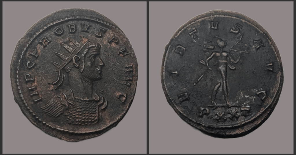 RIC II Trajan 119, 103-111AD, AR Denarius, IMP TRAIANO AVG GER DAC P M TR P, Aequitas, draped, seated left on chair without back, holding scales in right hand and cornucopiae in left, COS V P P S P Q R OPTIMO PRINC, 3.23g 19.0mm RIC IV Trebonianus Gallus 48A, 251-253AD, AR Antoninanus, IMP CAE C VIB TREB GALLVS AVG, Victory, winged, draped, standing left, holding wreath in right hand and palm in left hand, VICTORIA AVGG, 3.41g 22.4mmRIC II Vespasian 703, 74AD, AR Denarius, IMP CAESAR VESPASIANVS AVG, Winged caduceus, upright, PON MAX TR P COS V, 2.75g, 18.8mmRIC II Titus 124, 80AD, AR Denarius, IMP TITVS CAES VESPASIAN AVG P M, Square seat draped, three crescents in triangular frame with palmettes or corn-ears or both, TR P IX IMP XV COS VIII P P, 2.81g, 18.2mmRIC II Domitian 28 or 58, 81AD, AR Denarius, IMP CAES DOMITIANVS AVG P M. A very rare coin, minted during the first 4 months of Domitian’s reign, Sept 14-Dec 31 81AD, Minerva advancing right, holding spear and shield, [TR P?] COS VII DES VIII P P, The only difference between the references is the inclusion of “TR P” on the reverse, sadly I cannot determine which fits this coin, 2.66g, 18.7mmRIC II Domitian 735, 92AD, AR Denarius, IMP CAES DOMIT AVG GERM P M TR P XI, Minerva advancing right, holding spear and shield, IMP XXII COS XVI CENS P P P, Minerva was Domitian’s favorite deity, representing his moral and religious reforms, a break from the themes of the past that depicted military triumph and strength, 3.09g, 18.2mmRIC II Trajan 343, 114-117AD, AR Denarius, IMP CAES NER TRAIANO OPTIMO AVG GER DAC, Felicitas, draped, standing left, holding up caduceus in right hand and cornucopiae in left, P M TR P COS VI P P S P Q R, 3.16g, 18.4mmRIC III Antoninus Pius 417A, 140AD, AR Denarius, ANTONINVS AVG PIVS P P TR P COS III, Marcus Aurelius as Caesar, AVRELIVS CAESAR AVG PII F COS, 3.17g, 16.5mm, SOLDRIC IV Geta 20B, 200-202AD, AR Denarius, P SEPT GETA CAES PONT, Securitas, draped, seated left, holding globe in right hand, left arm resting on arm of chair, SECVRIT IMPERII, 1.94g, 17.3mmRIC IV Geta 23 Limes, 200-202AD, AE Limes Denarius, P SEPT GETA CAES PONT, Victory, winged, draped, flying left, holding ribbon in both hands over shield on low base, VICT AETERN, 2.58g, 18.3mmGeta/Caracalla Contemporary Fouree, 198-210AD, Silver plated AE, Head of Geta, This coin features an obverse/reverse mismatch, the victory reverse was used on coins of Caracalla, 1.31g, 16.5mmRIC IV Caracalla 9, 196-198AD, AR Denarius, M AVR ANTON CAES PONTIF, Felicitas, draped, standing left, holding caduceus in right hand and child in left arm, IMPERII FELICITAS, 2.23g, 17.9mmRIC IV Caracalla 179, 206-210AD, AR Denarius, ANTONINVS PIVS AVG, Caracalla, veiled, togate, standing left, sacrificing out of patera in right hand over tripod and holding roll in left hand, VOTA SVSCEPTA X, 3.00g, 19.2mmRIC IV Caracalla 206a, 213AD, AR Denarius, ANTONINVS PIVS AVG BRIT, Hercules naked except for lion-skin, holding branch and club. P M TR P XVI COS IIII P P, 3.32g, 18.4mmRIC IV Caracalla 206c, 213AD, AR Denarius, ANTONINVS PIVS AVG GERM, Hercules naked except for lion-skin, holding branch and club. P M TR P XVI COS IIII P P, 2.77g, 19.44mmRIC IV Elagabalus 72e, 218-222AD, AR Antoninianus, IMP ANTONINVS AVG, Fides, draped, standing front, head right, holding standard in left hand and vexillum in right hand, FIDES MILITVM, 4.66g, 22.9mmRIC IV Severus Alexander 301, 222-235AD, AR Denarius, Antioch Mint, IMP C M AVR SEV ALEXAND AVG, Victory, winged, draped, running right, holding wreath in right hand and palm in left hand; in field, star, VICTORIA AVG, 2.83g, 18.9mmRIC IV Gordian III 140, 243-244AD, AR Antoninianus, IMP GORDIANVS PIVS FEL AVG, Felicitas, draped, standing left, holding long caduceus in right hand and cornucopiae, FELICIT TEMP. 3.74g, 22.7mmRIC IV Philip I 40B, 244-247AD, AR Antoninianus,IMP M IVL PHILIPPVS AVG, Pax, draped, standing left, holding branch in right hand and transverse spear in left hand, PAX AETERNRIC V Valerian 106, 257AD, AR Antoninianus, IMP C P LIC VALERIANVS P F AVG, Sol, radiate, standing or walking left, raising right hand and holding whip or globe in left hand, ORIENS AVGG, SOLDRIC V Gallienus 260k: Subtype 1, 260-268AD, Billon Antoninianus, GALLIENVS AVG, Pax, draped, seated left, holding olive-branch in right hand and sceptre in left hand, PAX PVBLICARIC V Gallienus 668a: Subtype 3, 260-268AD, AR Billon Antoninianus, Antioch mint, 9th emission, ex. CNG, GALLIENVS AVG, Bust of Gallienus, radiate, draped, right, VIRTVS AVG, Virtus, helmeted, in military attire, standing left, holding shield in right hand and spear in left hand, -/-//*, 4.43g, 21.9mm RIC V Salonina (2) 71, 260-268AD, Billon Antoninianus, SALONINA AVG, Concordia, draped, seated left, holding patera in right hand and double cornucopiae in left hand,CONCOR AVG, /-//IIRIC V Postumus 83, 260-269AD, AR Antoninianus, Lugdunum Mint, IMP C POSTVMVS P F AVG, Postumus, draped, cuirassed, standing right, holding spear in right hand and globe in left hand, SAECVLI FELICITAS, 3.36g, 19.9mmRIC V Victorinus 61, 269-271AD, AR Antoninianus, Southern Gallic Mint, IMP C VICTORINVS P F AVG, Providentia, draped, standing left, holding baton in right hand and sceptre in left hand; at foot, globe, PROVID AVG or PROVIDENTIA AVGRIC V Claudius Gothicus 14, 268-270AD, Billon Antoninianus, Rome Mint, IMP C CLAVDIVS AVG, Aequitas, draped, standing left, holding scales in right hand and cornucopiae in left hand, AEQVITAS AVGRIC V Claudius Gothicus 214, 268-270AD, Billon Antoninianus, Antioch Mint, IMP C CLAVDIVS AVG, Neptune, standing left, holding dolphin in right hand and trident in left hand, NEPTVN AVG or NEPTVS AVG, /-//A, SOLDRIC V Tetricus I 271 Tetricus II, 273-274AD, Billon Antoninianus, Cologne Mint, C P ES TETRICVS CAES or C P ESV TETRICVS CAES or C E P TETRICVS CAES or C TETRICVS CAES, Spes, draped, walking left, holding flower in right hand and raising robe with left hand, SPES AVGGRIC V