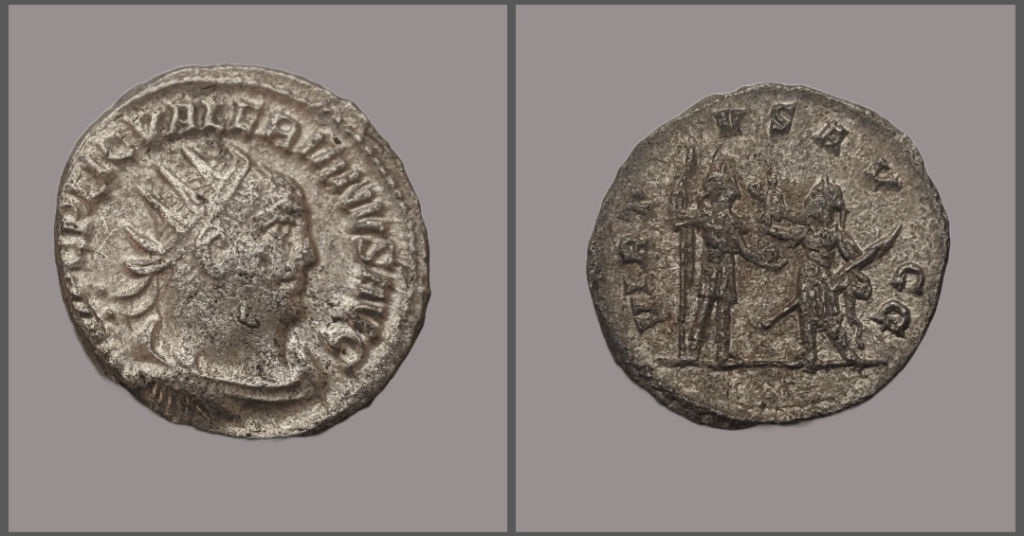 RIC II Trajan 119, 103-111AD, AR Denarius, IMP TRAIANO AVG GER DAC P M TR P, Aequitas, draped, seated left on chair without back, holding scales in right hand and cornucopiae in left, COS V P P S P Q R OPTIMO PRINC, 3.23g 19.0mm RIC IV Trebonianus Gallus 48A, 251-253AD, AR Antoninanus, IMP CAE C VIB TREB GALLVS AVG, Victory, winged, draped, standing left, holding wreath in right hand and palm in left hand, VICTORIA AVGG, 3.41g 22.4mmRIC II Vespasian 703, 74AD, AR Denarius, IMP CAESAR VESPASIANVS AVG, Winged caduceus, upright, PON MAX TR P COS V, 2.75g, 18.8mmRIC II Titus 124, 80AD, AR Denarius, IMP TITVS CAES VESPASIAN AVG P M, Square seat draped, three crescents in triangular frame with palmettes or corn-ears or both, TR P IX IMP XV COS VIII P P, 2.81g, 18.2mmRIC II Domitian 28 or 58, 81AD, AR Denarius, IMP CAES DOMITIANVS AVG P M. A very rare coin, minted during the first 4 months of Domitian’s reign, Sept 14-Dec 31 81AD, Minerva advancing right, holding spear and shield, [TR P?] COS VII DES VIII P P, The only difference between the references is the inclusion of “TR P” on the reverse, sadly I cannot determine which fits this coin, 2.66g, 18.7mmRIC II Domitian 735, 92AD, AR Denarius, IMP CAES DOMIT AVG GERM P M TR P XI, Minerva advancing right, holding spear and shield, IMP XXII COS XVI CENS P P P, Minerva was Domitian’s favorite deity, representing his moral and religious reforms, a break from the themes of the past that depicted military triumph and strength, 3.09g, 18.2mmRIC II Trajan 343, 114-117AD, AR Denarius, IMP CAES NER TRAIANO OPTIMO AVG GER DAC, Felicitas, draped, standing left, holding up caduceus in right hand and cornucopiae in left, P M TR P COS VI P P S P Q R, 3.16g, 18.4mmRIC III Antoninus Pius 417A, 140AD, AR Denarius, ANTONINVS AVG PIVS P P TR P COS III, Marcus Aurelius as Caesar, AVRELIVS CAESAR AVG PII F COS, 3.17g, 16.5mm, SOLDRIC IV Geta 20B, 200-202AD, AR Denarius, P SEPT GETA CAES PONT, Securitas, draped, seated left, holding globe in right hand, left arm resting on arm of chair, SECVRIT IMPERII, 1.94g, 17.3mmRIC IV Geta 23 Limes, 200-202AD, AE Limes Denarius, P SEPT GETA CAES PONT, Victory, winged, draped, flying left, holding ribbon in both hands over shield on low base, VICT AETERN, 2.58g, 18.3mmGeta/Caracalla Contemporary Fouree, 198-210AD, Silver plated AE, Head of Geta, This coin features an obverse/reverse mismatch, the victory reverse was used on coins of Caracalla, 1.31g, 16.5mmRIC IV Caracalla 9, 196-198AD, AR Denarius, M AVR ANTON CAES PONTIF, Felicitas, draped, standing left, holding caduceus in right hand and child in left arm, IMPERII FELICITAS, 2.23g, 17.9mmRIC IV Caracalla 179, 206-210AD, AR Denarius, ANTONINVS PIVS AVG, Caracalla, veiled, togate, standing left, sacrificing out of patera in right hand over tripod and holding roll in left hand, VOTA SVSCEPTA X, 3.00g, 19.2mmRIC IV Caracalla 206a, 213AD, AR Denarius, ANTONINVS PIVS AVG BRIT, Hercules naked except for lion-skin, holding branch and club. P M TR P XVI COS IIII P P, 3.32g, 18.4mmRIC IV Caracalla 206c, 213AD, AR Denarius, ANTONINVS PIVS AVG GERM, Hercules naked except for lion-skin, holding branch and club. P M TR P XVI COS IIII P P, 2.77g, 19.44mmRIC IV Elagabalus 72e, 218-222AD, AR Antoninianus, IMP ANTONINVS AVG, Fides, draped, standing front, head right, holding standard in left hand and vexillum in right hand, FIDES MILITVM, 4.66g, 22.9mmRIC IV Severus Alexander 301, 222-235AD, AR Denarius, Antioch Mint, IMP C M AVR SEV ALEXAND AVG, Victory, winged, draped, running right, holding wreath in right hand and palm in left hand; in field, star, VICTORIA AVG, 2.83g, 18.9mmRIC IV Gordian III 140, 243-244AD, AR Antoninianus, IMP GORDIANVS PIVS FEL AVG, Felicitas, draped, standing left, holding long caduceus in right hand and cornucopiae, FELICIT TEMP. 3.74g, 22.7mmRIC IV Philip I 40B, 244-247AD, AR Antoninianus,IMP M IVL PHILIPPVS AVG, Pax, draped, standing left, holding branch in right hand and transverse spear in left hand, PAX AETERNRIC V Valerian 106, 257AD, AR Antoninianus, IMP C P LIC VALERIANVS P F AVG, Sol, radiate, standing or walking left, raising right hand and holding whip or globe in left hand, ORIENS AVGG, SOLDRIC V Gallienus 260k: Subtype 1, 260-268AD, Billon Antoninianus, GALLIENVS AVG, Pax, draped, seated left, holding olive-branch in right hand and sceptre in left hand, PAX PVBLICARIC V Gallienus 668a: Subtype 3, 260-268AD, AR Billon Antoninianus, Antioch mint, 9th emission, ex. CNG, GALLIENVS AVG, Bust of Gallienus, radiate, draped, right, VIRTVS AVG, Virtus, helmeted, in military attire, standing left, holding shield in right hand and spear in left hand, -/-//*, 4.43g, 21.9mm RIC V Salonina (2) 71, 260-268AD, Billon Antoninianus, SALONINA AVG, Concordia, draped, seated left, holding patera in right hand and double cornucopiae in left hand,CONCOR AVG, /-//IIRIC V Postumus 83, 260-269AD, AR Antoninianus, Lugdunum Mint, IMP C POSTVMVS P F AVG, Postumus, draped, cuirassed, standing right, holding spear in right hand and globe in left hand, SAECVLI FELICITAS, 3.36g, 19.9mmRIC V Victorinus 61, 269-271AD, AR Antoninianus, Southern Gallic Mint, IMP C VICTORINVS P F AVG, Providentia, draped, standing left, holding baton in right hand and sceptre in left hand; at foot, globe, PROVID AVG or PROVIDENTIA AVGRIC V Claudius Gothicus 14, 268-270AD, Billon Antoninianus, Rome Mint, IMP C CLAVDIVS AVG, Aequitas, draped, standing left, holding scales in right hand and cornucopiae in left hand, AEQVITAS AVGRIC V Claudius Gothicus 214, 268-270AD, Billon Antoninianus, Antioch Mint, IMP C CLAVDIVS AVG, Neptune, standing left, holding dolphin in right hand and trident in left hand, NEPTVN AVG or NEPTVS AVG, /-//A, SOLDRIC V Tetricus I 271 Tetricus II, 273-274AD, Billon Antoninianus, Cologne Mint, C P ES TETRICVS CAES or C P ESV TETRICVS CAES or C E P TETRICVS CAES or C TETRICVS CAES, Spes, draped, walking left, holding flower in right hand and raising robe with left hand, SPES AVGGRIC V