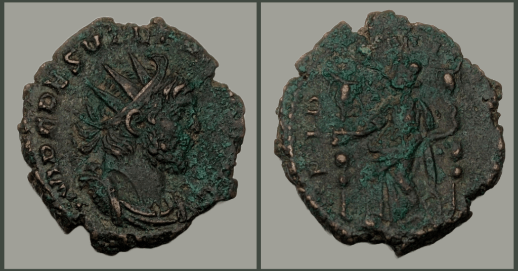 RIC II Trajan 119, 103-111AD, AR Denarius, IMP TRAIANO AVG GER DAC P M TR P, Aequitas, draped, seated left on chair without back, holding scales in right hand and cornucopiae in left, COS V P P S P Q R OPTIMO PRINC, 3.23g 19.0mm RIC IV Trebonianus Gallus 48A, 251-253AD, AR Antoninanus, IMP CAE C VIB TREB GALLVS AVG, Victory, winged, draped, standing left, holding wreath in right hand and palm in left hand, VICTORIA AVGG, 3.41g 22.4mmRIC II Vespasian 703, 74AD, AR Denarius, IMP CAESAR VESPASIANVS AVG, Winged caduceus, upright, PON MAX TR P COS V, 2.75g, 18.8mmRIC II Titus 124, 80AD, AR Denarius, IMP TITVS CAES VESPASIAN AVG P M, Square seat draped, three crescents in triangular frame with palmettes or corn-ears or both, TR P IX IMP XV COS VIII P P, 2.81g, 18.2mmRIC II Domitian 28 or 58, 81AD, AR Denarius, IMP CAES DOMITIANVS AVG P M. A very rare coin, minted during the first 4 months of Domitian’s reign, Sept 14-Dec 31 81AD, Minerva advancing right, holding spear and shield, [TR P?] COS VII DES VIII P P, The only difference between the references is the inclusion of “TR P” on the reverse, sadly I cannot determine which fits this coin, 2.66g, 18.7mmRIC II Domitian 735, 92AD, AR Denarius, IMP CAES DOMIT AVG GERM P M TR P XI, Minerva advancing right, holding spear and shield, IMP XXII COS XVI CENS P P P, Minerva was Domitian’s favorite deity, representing his moral and religious reforms, a break from the themes of the past that depicted military triumph and strength, 3.09g, 18.2mmRIC II Trajan 343, 114-117AD, AR Denarius, IMP CAES NER TRAIANO OPTIMO AVG GER DAC, Felicitas, draped, standing left, holding up caduceus in right hand and cornucopiae in left, P M TR P COS VI P P S P Q R, 3.16g, 18.4mmRIC III Antoninus Pius 417A, 140AD, AR Denarius, ANTONINVS AVG PIVS P P TR P COS III, Marcus Aurelius as Caesar, AVRELIVS CAESAR AVG PII F COS, 3.17g, 16.5mm, SOLDRIC IV Geta 20B, 200-202AD, AR Denarius, P SEPT GETA CAES PONT, Securitas, draped, seated left, holding globe in right hand, left arm resting on arm of chair, SECVRIT IMPERII, 1.94g, 17.3mmRIC IV Geta 23 Limes, 200-202AD, AE Limes Denarius, P SEPT GETA CAES PONT, Victory, winged, draped, flying left, holding ribbon in both hands over shield on low base, VICT AETERN, 2.58g, 18.3mmGeta/Caracalla Contemporary Fouree, 198-210AD, Silver plated AE, Head of Geta, This coin features an obverse/reverse mismatch, the victory reverse was used on coins of Caracalla, 1.31g, 16.5mmRIC IV Caracalla 9, 196-198AD, AR Denarius, M AVR ANTON CAES PONTIF, Felicitas, draped, standing left, holding caduceus in right hand and child in left arm, IMPERII FELICITAS, 2.23g, 17.9mmRIC IV Caracalla 179, 206-210AD, AR Denarius, ANTONINVS PIVS AVG, Caracalla, veiled, togate, standing left, sacrificing out of patera in right hand over tripod and holding roll in left hand, VOTA SVSCEPTA X, 3.00g, 19.2mmRIC IV Caracalla 206a, 213AD, AR Denarius, ANTONINVS PIVS AVG BRIT, Hercules naked except for lion-skin, holding branch and club. P M TR P XVI COS IIII P P, 3.32g, 18.4mmRIC IV Caracalla 206c, 213AD, AR Denarius, ANTONINVS PIVS AVG GERM, Hercules naked except for lion-skin, holding branch and club. P M TR P XVI COS IIII P P, 2.77g, 19.44mmRIC IV Elagabalus 72e, 218-222AD, AR Antoninianus, IMP ANTONINVS AVG, Fides, draped, standing front, head right, holding standard in left hand and vexillum in right hand, FIDES MILITVM, 4.66g, 22.9mmRIC IV Severus Alexander 301, 222-235AD, AR Denarius, Antioch Mint, IMP C M AVR SEV ALEXAND AVG, Victory, winged, draped, running right, holding wreath in right hand and palm in left hand; in field, star, VICTORIA AVG, 2.83g, 18.9mmRIC IV Gordian III 140, 243-244AD, AR Antoninianus, IMP GORDIANVS PIVS FEL AVG, Felicitas, draped, standing left, holding long caduceus in right hand and cornucopiae, FELICIT TEMP. 3.74g, 22.7mmRIC IV Philip I 40B, 244-247AD, AR Antoninianus,IMP M IVL PHILIPPVS AVG, Pax, draped, standing left, holding branch in right hand and transverse spear in left hand, PAX AETERNRIC V Valerian 106, 257AD, AR Antoninianus, IMP C P LIC VALERIANVS P F AVG, Sol, radiate, standing or walking left, raising right hand and holding whip or globe in left hand, ORIENS AVGG, SOLDRIC V Gallienus 260k: Subtype 1, 260-268AD, Billon Antoninianus, GALLIENVS AVG, Pax, draped, seated left, holding olive-branch in right hand and sceptre in left hand, PAX PVBLICARIC V Gallienus 668a: Subtype 3, 260-268AD, AR Billon Antoninianus, Antioch mint, 9th emission, ex. CNG, GALLIENVS AVG, Bust of Gallienus, radiate, draped, right, VIRTVS AVG, Virtus, helmeted, in military attire, standing left, holding shield in right hand and spear in left hand, -/-//*, 4.43g, 21.9mm RIC V Salonina (2) 71, 260-268AD, Billon Antoninianus, SALONINA AVG, Concordia, draped, seated left, holding patera in right hand and double cornucopiae in left hand,CONCOR AVG, /-//IIRIC V Postumus 83, 260-269AD, AR Antoninianus, Lugdunum Mint, IMP C POSTVMVS P F AVG, Postumus, draped, cuirassed, standing right, holding spear in right hand and globe in left hand, SAECVLI FELICITAS, 3.36g, 19.9mmRIC V Victorinus 61, 269-271AD, AR Antoninianus, Southern Gallic Mint, IMP C VICTORINVS P F AVG, Providentia, draped, standing left, holding baton in right hand and sceptre in left hand; at foot, globe, PROVID AVG or PROVIDENTIA AVGRIC V Claudius Gothicus 14, 268-270AD, Billon Antoninianus, Rome Mint, IMP C CLAVDIVS AVG, Aequitas, draped, standing left, holding scales in right hand and cornucopiae in left hand, AEQVITAS AVGRIC V Claudius Gothicus 214, 268-270AD, Billon Antoninianus, Antioch Mint, IMP C CLAVDIVS AVG, Neptune, standing left, holding dolphin in right hand and trident in left hand, NEPTVN AVG or NEPTVS AVG, /-//A, SOLDRIC V Tetricus I 271 Tetricus II, 273-274AD, Billon Antoninianus, Cologne Mint, C P ES TETRICVS CAES or C P ESV TETRICVS CAES or C E P TETRICVS CAES or C TETRICVS CAES, Spes, draped, walking left, holding flower in right hand and raising robe with left hand, SPES AVGGRIC V