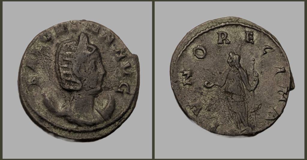 RIC II Trajan 119, 103-111AD, AR Denarius, IMP TRAIANO AVG GER DAC P M TR P, Aequitas, draped, seated left on chair without back, holding scales in right hand and cornucopiae in left, COS V P P S P Q R OPTIMO PRINC, 3.23g 19.0mm RIC IV Trebonianus Gallus 48A, 251-253AD, AR Antoninanus, IMP CAE C VIB TREB GALLVS AVG, Victory, winged, draped, standing left, holding wreath in right hand and palm in left hand, VICTORIA AVGG, 3.41g 22.4mmRIC II Vespasian 703, 74AD, AR Denarius, IMP CAESAR VESPASIANVS AVG, Winged caduceus, upright, PON MAX TR P COS V, 2.75g, 18.8mmRIC II Titus 124, 80AD, AR Denarius, IMP TITVS CAES VESPASIAN AVG P M, Square seat draped, three crescents in triangular frame with palmettes or corn-ears or both, TR P IX IMP XV COS VIII P P, 2.81g, 18.2mmRIC II Domitian 28 or 58, 81AD, AR Denarius, IMP CAES DOMITIANVS AVG P M. A very rare coin, minted during the first 4 months of Domitian’s reign, Sept 14-Dec 31 81AD, Minerva advancing right, holding spear and shield, [TR P?] COS VII DES VIII P P, The only difference between the references is the inclusion of “TR P” on the reverse, sadly I cannot determine which fits this coin, 2.66g, 18.7mmRIC II Domitian 735, 92AD, AR Denarius, IMP CAES DOMIT AVG GERM P M TR P XI, Minerva advancing right, holding spear and shield, IMP XXII COS XVI CENS P P P, Minerva was Domitian’s favorite deity, representing his moral and religious reforms, a break from the themes of the past that depicted military triumph and strength, 3.09g, 18.2mmRIC II Trajan 343, 114-117AD, AR Denarius, IMP CAES NER TRAIANO OPTIMO AVG GER DAC, Felicitas, draped, standing left, holding up caduceus in right hand and cornucopiae in left, P M TR P COS VI P P S P Q R, 3.16g, 18.4mmRIC III Antoninus Pius 417A, 140AD, AR Denarius, ANTONINVS AVG PIVS P P TR P COS III, Marcus Aurelius as Caesar, AVRELIVS CAESAR AVG PII F COS, 3.17g, 16.5mm, SOLDRIC IV Geta 20B, 200-202AD, AR Denarius, P SEPT GETA CAES PONT, Securitas, draped, seated left, holding globe in right hand, left arm resting on arm of chair, SECVRIT IMPERII, 1.94g, 17.3mmRIC IV Geta 23 Limes, 200-202AD, AE Limes Denarius, P SEPT GETA CAES PONT, Victory, winged, draped, flying left, holding ribbon in both hands over shield on low base, VICT AETERN, 2.58g, 18.3mmGeta/Caracalla Contemporary Fouree, 198-210AD, Silver plated AE, Head of Geta, This coin features an obverse/reverse mismatch, the victory reverse was used on coins of Caracalla, 1.31g, 16.5mmRIC IV Caracalla 9, 196-198AD, AR Denarius, M AVR ANTON CAES PONTIF, Felicitas, draped, standing left, holding caduceus in right hand and child in left arm, IMPERII FELICITAS, 2.23g, 17.9mmRIC IV Caracalla 179, 206-210AD, AR Denarius, ANTONINVS PIVS AVG, Caracalla, veiled, togate, standing left, sacrificing out of patera in right hand over tripod and holding roll in left hand, VOTA SVSCEPTA X, 3.00g, 19.2mmRIC IV Caracalla 206a, 213AD, AR Denarius, ANTONINVS PIVS AVG BRIT, Hercules naked except for lion-skin, holding branch and club. P M TR P XVI COS IIII P P, 3.32g, 18.4mmRIC IV Caracalla 206c, 213AD, AR Denarius, ANTONINVS PIVS AVG GERM, Hercules naked except for lion-skin, holding branch and club. P M TR P XVI COS IIII P P, 2.77g, 19.44mmRIC IV Elagabalus 72e, 218-222AD, AR Antoninianus, IMP ANTONINVS AVG, Fides, draped, standing front, head right, holding standard in left hand and vexillum in right hand, FIDES MILITVM, 4.66g, 22.9mmRIC IV Severus Alexander 301, 222-235AD, AR Denarius, Antioch Mint, IMP C M AVR SEV ALEXAND AVG, Victory, winged, draped, running right, holding wreath in right hand and palm in left hand; in field, star, VICTORIA AVG, 2.83g, 18.9mmRIC IV Gordian III 140, 243-244AD, AR Antoninianus, IMP GORDIANVS PIVS FEL AVG, Felicitas, draped, standing left, holding long caduceus in right hand and cornucopiae, FELICIT TEMP. 3.74g, 22.7mmRIC IV Philip I 40B, 244-247AD, AR Antoninianus,IMP M IVL PHILIPPVS AVG, Pax, draped, standing left, holding branch in right hand and transverse spear in left hand, PAX AETERNRIC V Valerian 106, 257AD, AR Antoninianus, IMP C P LIC VALERIANVS P F AVG, Sol, radiate, standing or walking left, raising right hand and holding whip or globe in left hand, ORIENS AVGG, SOLDRIC V Gallienus 260k: Subtype 1, 260-268AD, Billon Antoninianus, GALLIENVS AVG, Pax, draped, seated left, holding olive-branch in right hand and sceptre in left hand, PAX PVBLICARIC V Gallienus 668a: Subtype 3, 260-268AD, AR Billon Antoninianus, Antioch mint, 9th emission, ex. CNG, GALLIENVS AVG, Bust of Gallienus, radiate, draped, right, VIRTVS AVG, Virtus, helmeted, in military attire, standing left, holding shield in right hand and spear in left hand, -/-//*, 4.43g, 21.9mm RIC V Salonina (2) 71, 260-268AD, Billon Antoninianus, SALONINA AVG, Concordia, draped, seated left, holding patera in right hand and double cornucopiae in left hand,CONCOR AVG, /-//IIRIC V Postumus 83, 260-269AD, AR Antoninianus, Lugdunum Mint, IMP C POSTVMVS P F AVG, Postumus, draped, cuirassed, standing right, holding spear in right hand and globe in left hand, SAECVLI FELICITAS, 3.36g, 19.9mmRIC V Victorinus 61, 269-271AD, AR Antoninianus, Southern Gallic Mint, IMP C VICTORINVS P F AVG, Providentia, draped, standing left, holding baton in right hand and sceptre in left hand; at foot, globe, PROVID AVG or PROVIDENTIA AVGRIC V Claudius Gothicus 14, 268-270AD, Billon Antoninianus, Rome Mint, IMP C CLAVDIVS AVG, Aequitas, draped, standing left, holding scales in right hand and cornucopiae in left hand, AEQVITAS AVGRIC V Claudius Gothicus 214, 268-270AD, Billon Antoninianus, Antioch Mint, IMP C CLAVDIVS AVG, Neptune, standing left, holding dolphin in right hand and trident in left hand, NEPTVN AVG or NEPTVS AVG, /-//A, SOLDRIC V Tetricus I 271 Tetricus II, 273-274AD, Billon Antoninianus, Cologne Mint, C P ES TETRICVS CAES or C P ESV TETRICVS CAES or C E P TETRICVS CAES or C TETRICVS CAES, Spes, draped, walking left, holding flower in right hand and raising robe with left hand, SPES AVGGRIC V